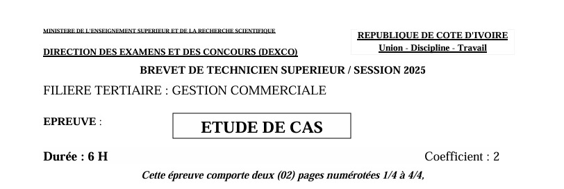BTS GEC ETUDE DE CAS Session 2025