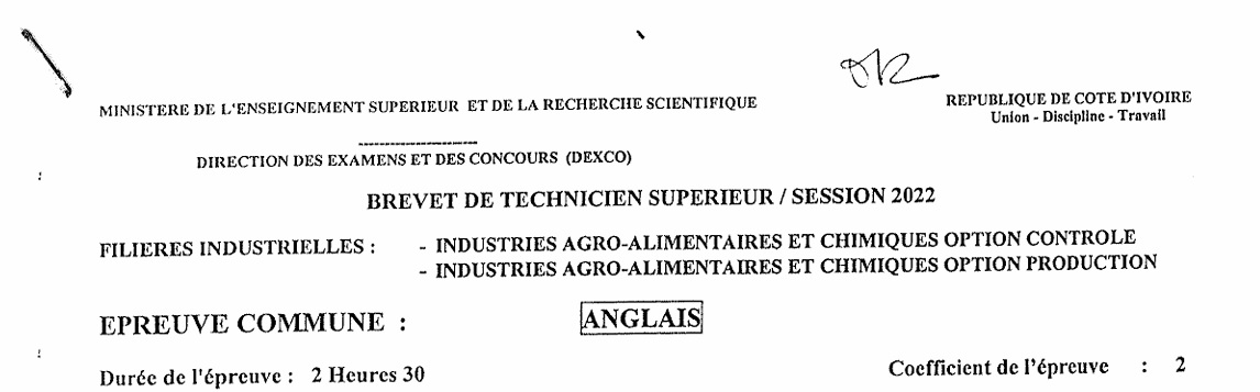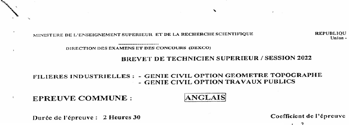 BTS GBAT ANGLAIS Session 2022