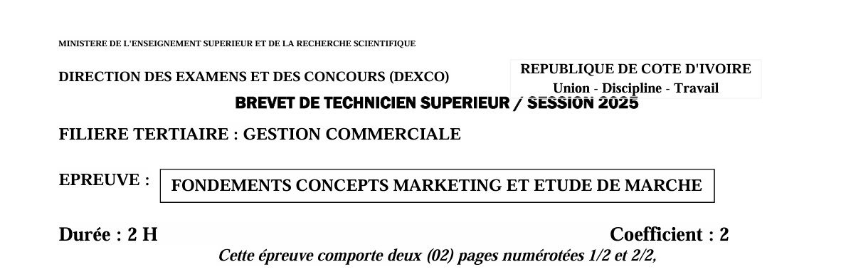 BTS GEC FONDEMENTS, CONCEPTS MARKETING ET ETUDE DE MARCHE Session 2025