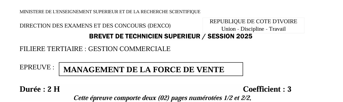 BTS GEC MANAGEMENT DE LA FORCE DE VENTE Session 2025