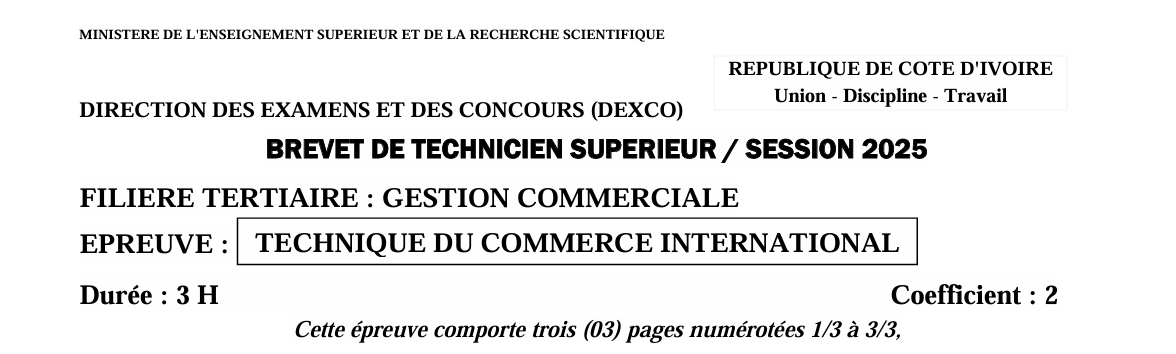 BTS GEC TECHNIQUE DU COMMERCE INTERNATIONAL Session 2025