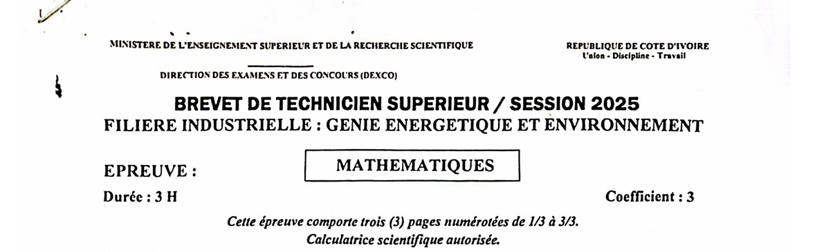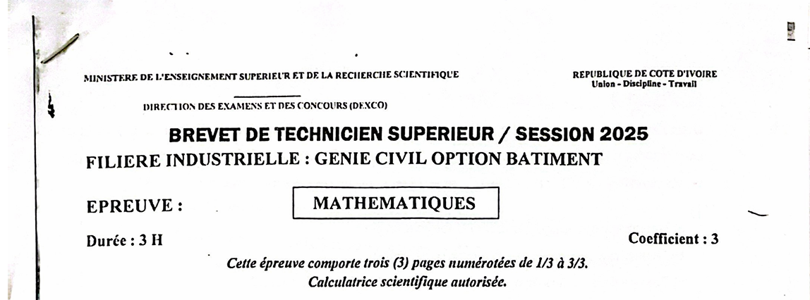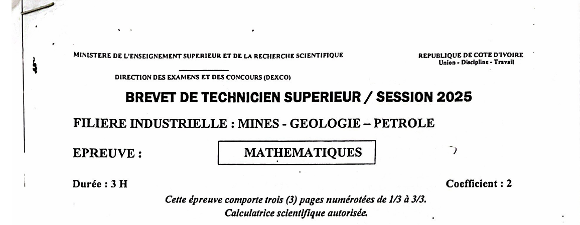 BTS GEE MATHEMATIQUES Session 2025