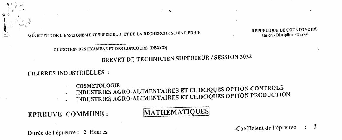 BTS IACC MATHEMATIQUES Session 2022