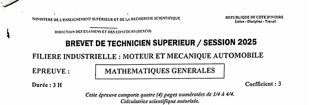 BTS MGP MATHEMATIQUES Session 2025