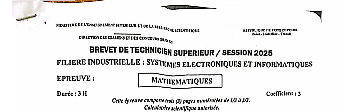 BTS SEI MATHEMATIQUES Session 2025
