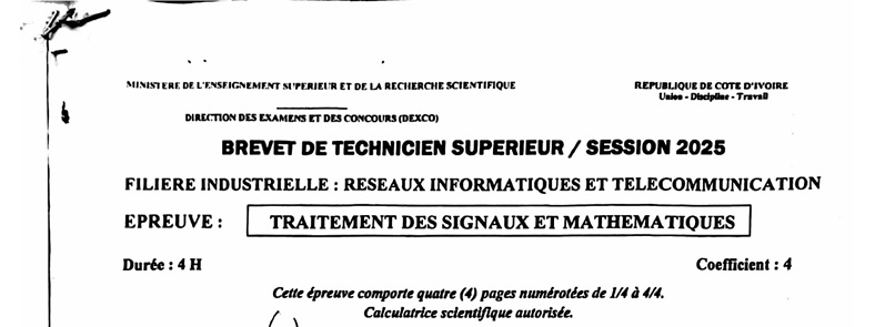 BTS RIT TRAITEMENT DE SIGNAL ET MATHEMATIQUES Session 2025