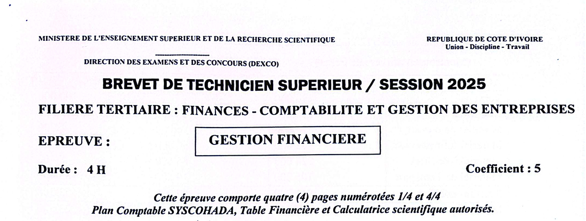 BTS FCGE GESTION FINANCIERE Session 2025